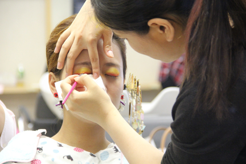 メイクアップ部門ではメイク・ネイルコースの学生がshu uemuraのメイクアッププログラムをベースにそれぞれがテーマに沿ったメイクをおこない、30分の競技時間でトータルに仕上げていきます。