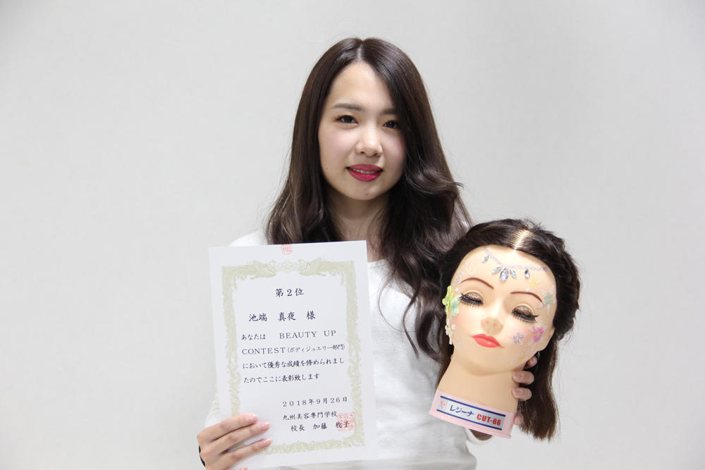 昨日、校内コンテスト「Beauty Up Contest 2018」が開催されました。ヘアデザイン部門、 メイクアップ部門、アップスタイル部門、ボディージュエリー部門、ワインディング部門の5つの部門でコンテストが開催されました。
