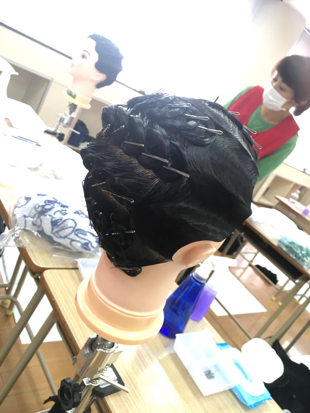 実技試験の課題は第一課題【レイヤーカット】、第二課題【オールウェーブ】です。まずは第一課題のレイヤーカットからスタートです。