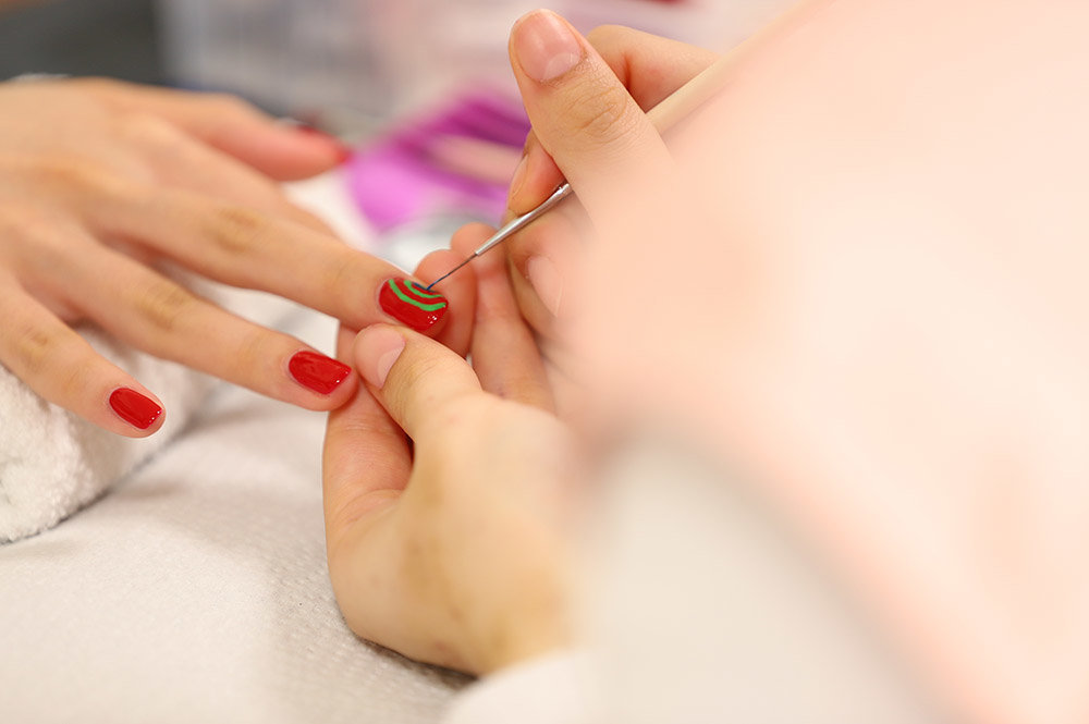 試験内容は実技と筆記の両方で、実技ではネイルケア、ネイルポリッシュ、ジェルネイル、アート、といった課題を時間内に行っていきます。