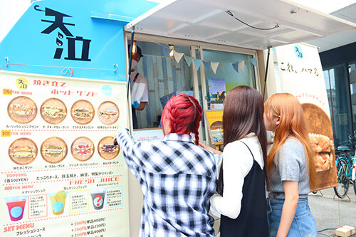 たくさんの学生が可愛らしいキッチンカーといい匂いにつられて列をつくりました🥰