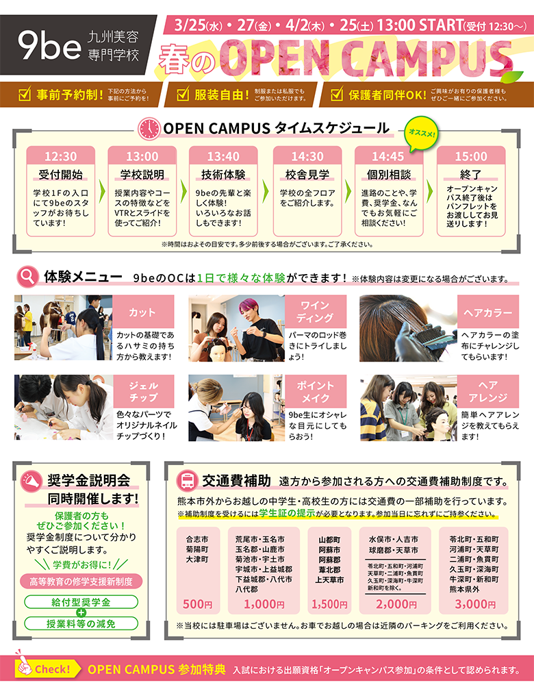 毎年大好評の「9be春のオープンキャンパス」申し込み受付中です!
